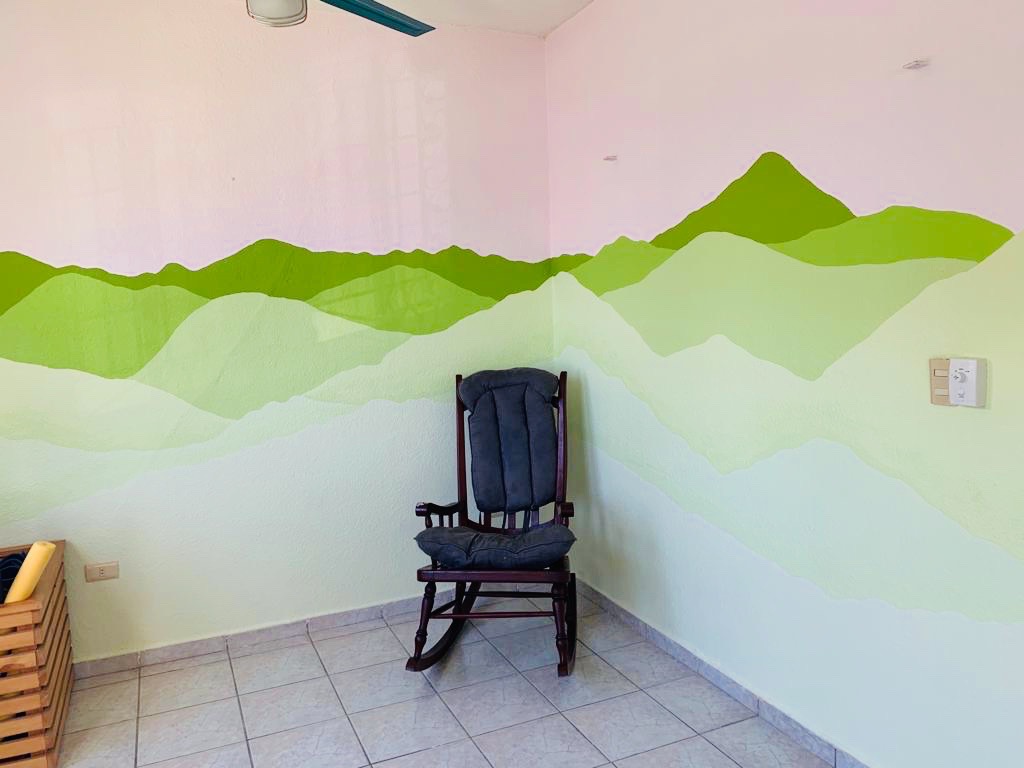 Our second mural for this natural birthing charity in Mexico was within another birthing room which is also often used for yoga, community classes and meet up groups.